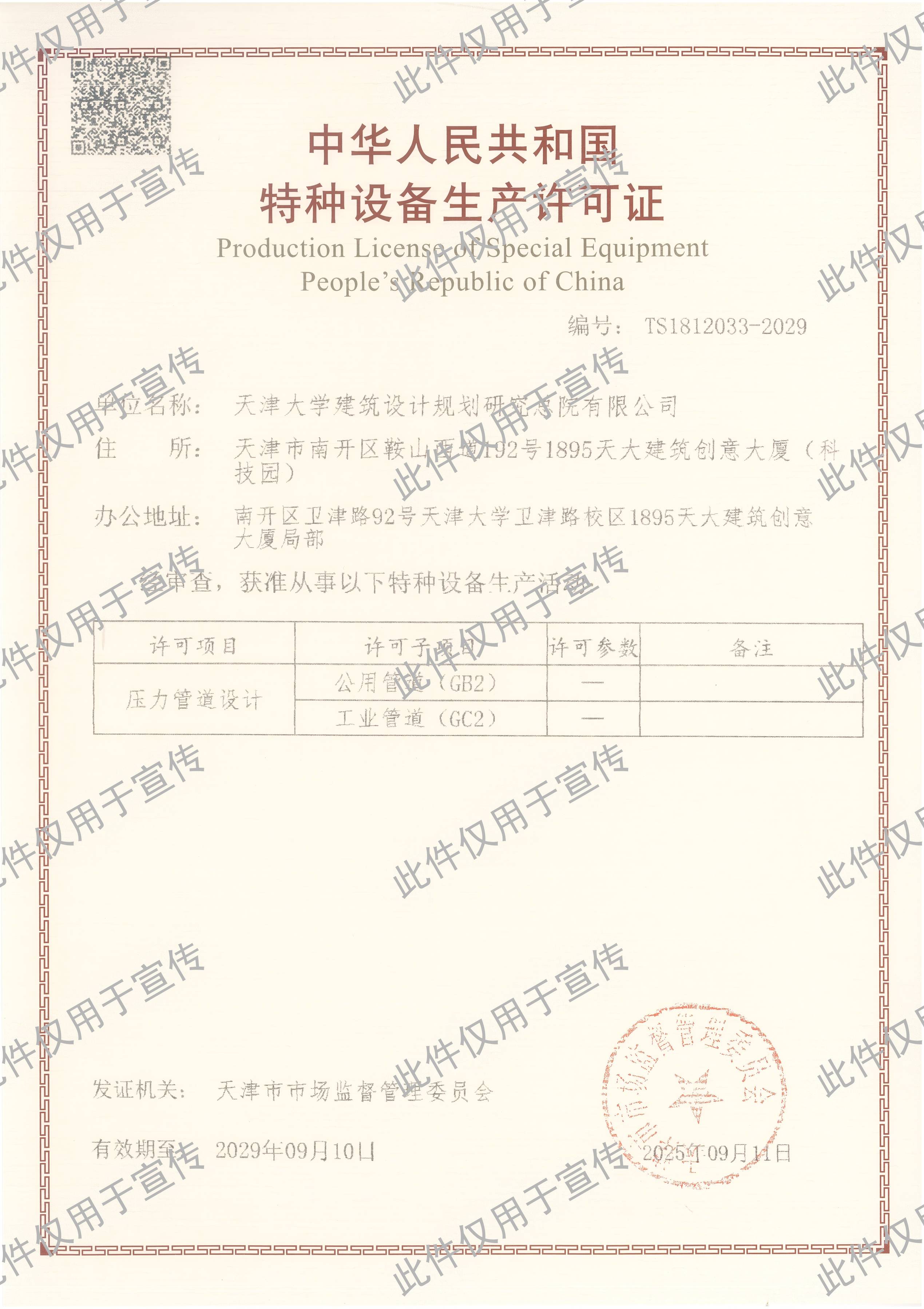- 特種設備(壓力管道)設計許可證