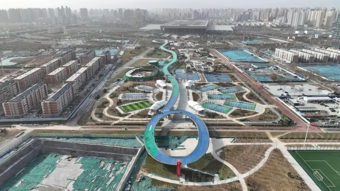 高鐵片區中央綠色體育公園位于石家莊火車站東側,規劃占地面積約29萬平方米,總建筑面積約7.66萬平方米,其中地上建筑面積1.05萬平方米,地下建筑面積6.61萬平方米。公園自東向西劃分為4個區域,分別為生態健身運動區、活力競技運動區、特色主題運動區、運動文化展示區,打造集美化環境、體育健身、運動休閑休憩等為一體的開放式體育公園。