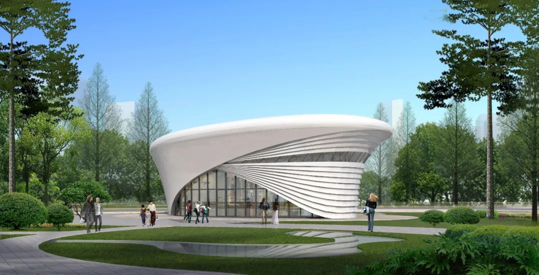 各場館建筑整體形象均以曲面形體為主,更加富有現代感、科技感。造型前衛靈動,各場館散落于園區之內,建筑外飾面采用鋁板幕墻、玻璃幕墻、外墻真石漆等進行裝飾,表現園區時尚前衛的現代感,為石家莊站前空間注入新的活力。