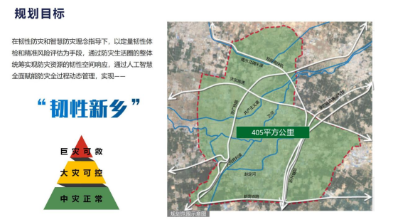 近年來(lái)城市化發(fā)展加速,城市脆弱性愈加凸顯,在全球極端災(zāi)害頻發(fā)的外部條件下,城市安全問(wèn)題日益突出。城市防災(zāi)工作結(jié)合智能智慧技術(shù)已進(jìn)入防災(zāi)3.0階段,提高城市系統(tǒng)對(duì)災(zāi)害的自適應(yīng)性,構(gòu)建韌性智慧的新型綜合防災(zāi)系統(tǒng)成為我國(guó)推進(jìn)新型城鎮(zhèn)化建設(shè)的重要選擇。本規(guī)劃在韌性防災(zāi)和智慧防災(zāi)理念指導(dǎo)下,以定量韌性體檢和精準(zhǔn)風(fēng)險(xiǎn)評(píng)估為手段,通過(guò)防災(zāi)生活圈的整體統(tǒng)籌實(shí)現(xiàn)防災(zāi)資源的韌性空間響應(yīng),通過(guò)人工智慧全面賦能防災(zāi)全過(guò)程動(dòng)態(tài)管理,最終實(shí)現(xiàn)“韌性新鄉(xiāng)”中災(zāi)正常、大災(zāi)可控、巨災(zāi)可救的綜合防御目標(biāo)。