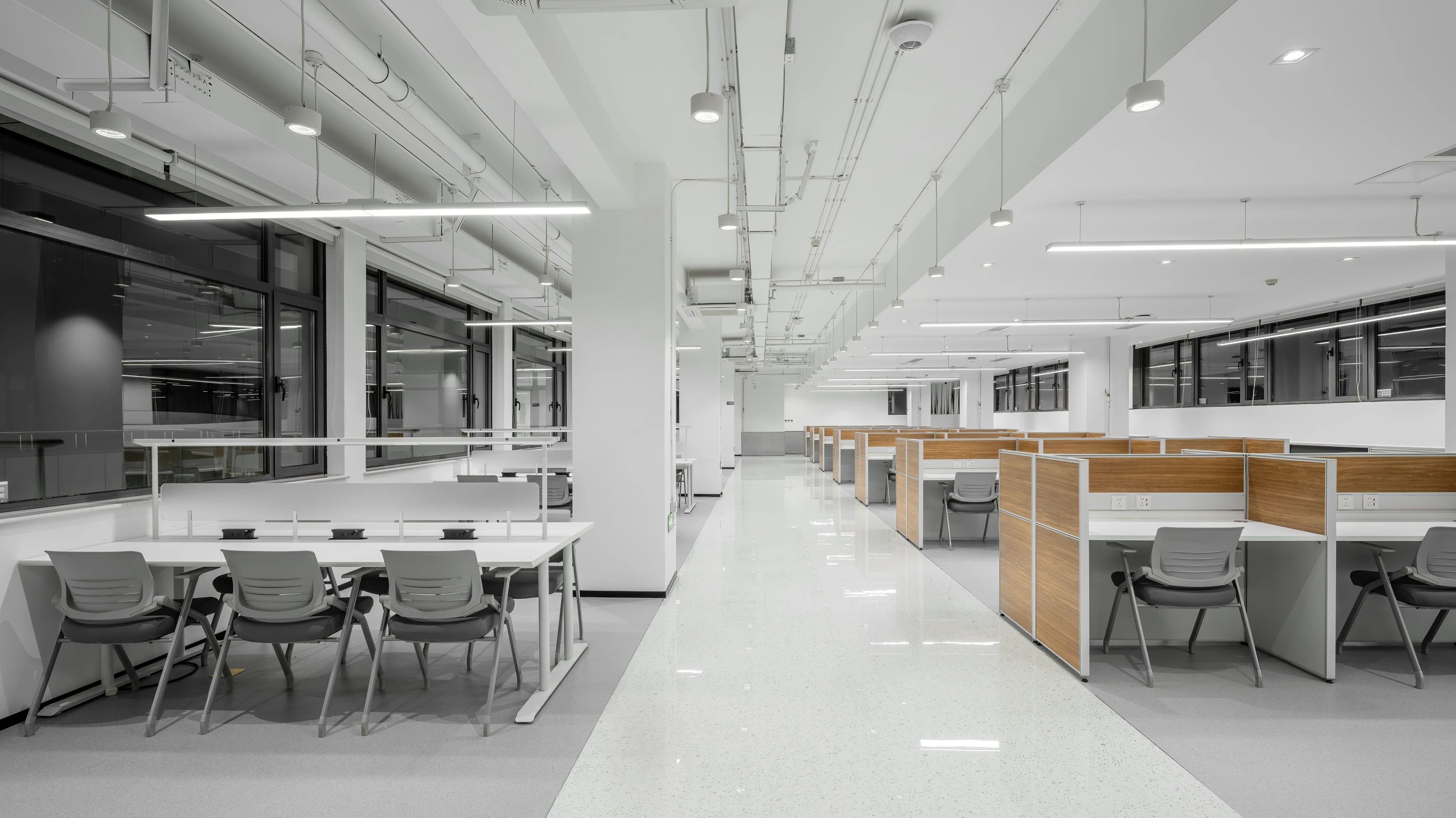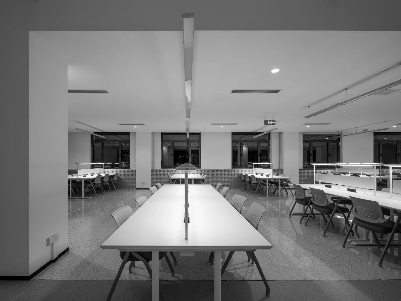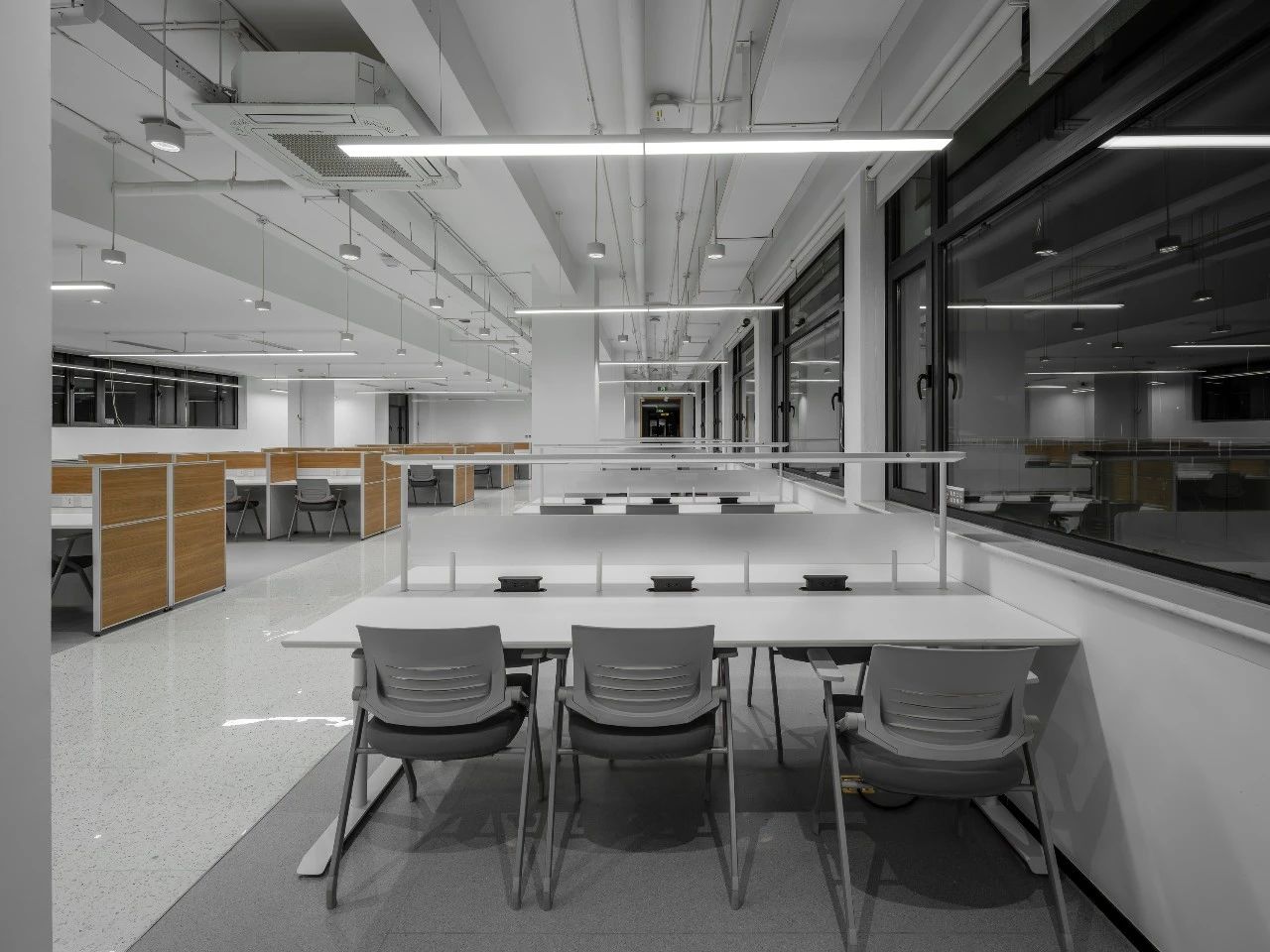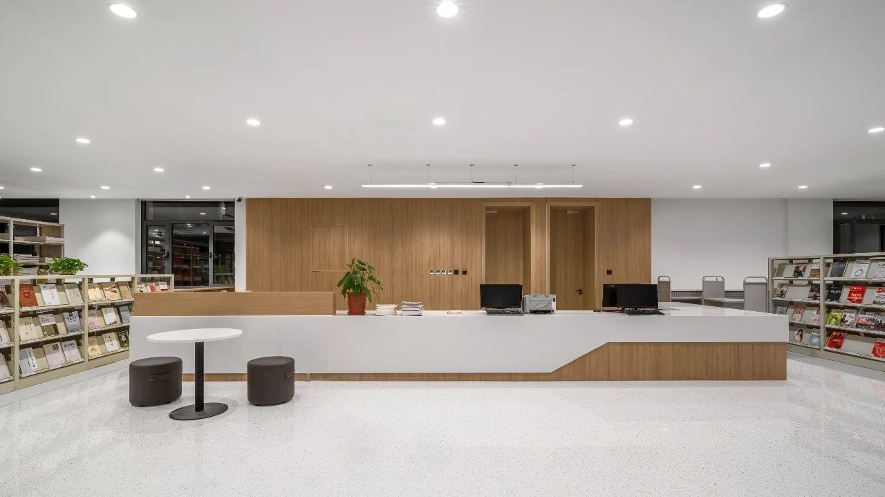 閱覽室部分采用裸頂設計,拆除原隔斷墻體,并引入玻璃墻體,每一個角落都透露出設計者的匠心獨運,柔和的燈光映襯下,舒適的座椅和人性化的服務臺顯得格外溫馨,這些細節的處理無不體現出對讀者的深切關懷和對學習體驗的極致追求。