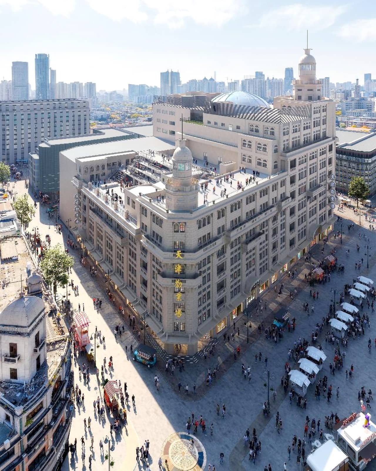 天大設計總院設計團隊、中建三局集團有限公司、江蘇江都古典園林建設有限公司有幸承接天津勸業場更新利用(歷史文化名城保護)項目EPC工程,必將使其在建筑風貌上修舊如舊、傳承歷史,講好天津故事。