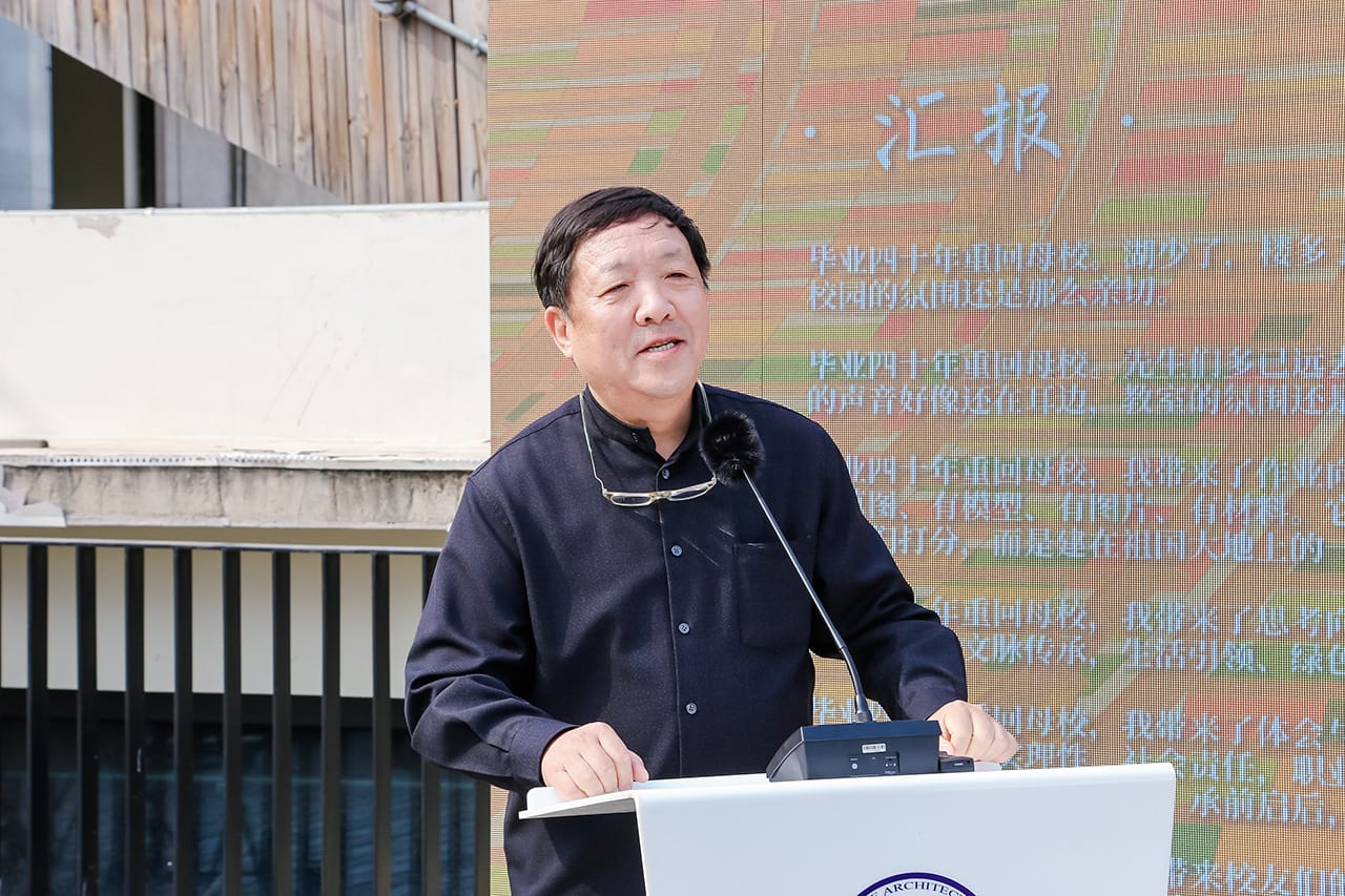 張玉坤簡(jiǎn)單回顧了學(xué)生生涯中的經(jīng)歷,表示很高興同學(xué)們有這次向母校匯報(bào)和重聚的機(jī)會(huì),祝愿本土設(shè)計(jì)在崔院士帶領(lǐng)下取得更加輝煌的成績(jī)。