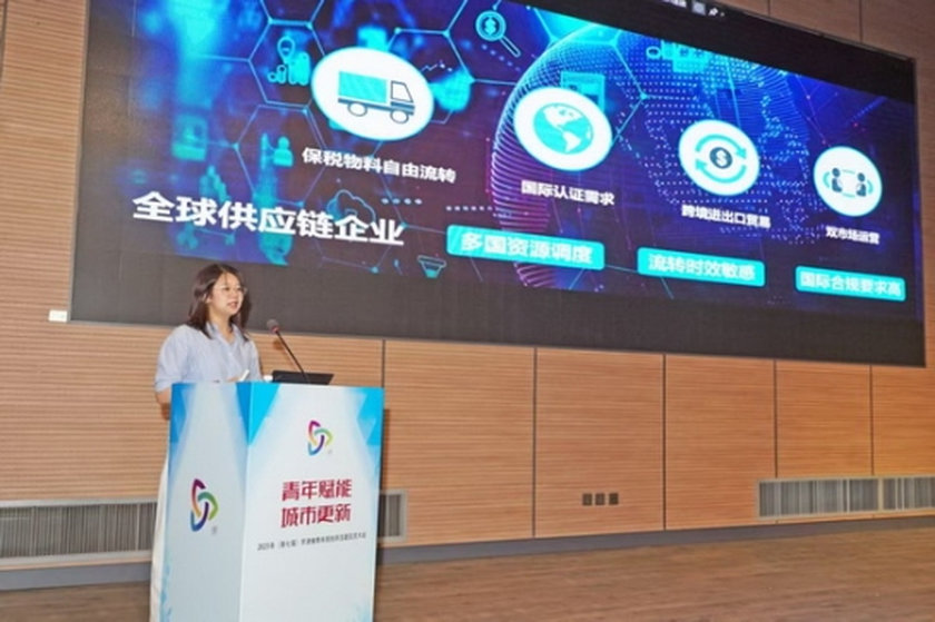 在作品宣講環(huán)節(jié),天大設(shè)計總院規(guī)劃四院的青年規(guī)劃師趙曉劼以《產(chǎn)教協(xié)同與空間適配:京津冀產(chǎn)業(yè)協(xié)同視域下產(chǎn)業(yè)轉(zhuǎn)型中人才支撐與社區(qū)載體構(gòu)建研究—以天津空港綜保區(qū)項目為例》為題,進(jìn)行了最佳作品的宣講展示。研究聚焦綜保區(qū)在全球價值鏈重構(gòu)與國內(nèi)轉(zhuǎn)型攻堅雙重壓力下,搶抓國家新政策的機(jī)遇,亟需從傳統(tǒng)保稅功能向“中國接入全球價值鏈的戰(zhàn)略支點(diǎn)”轉(zhuǎn)型升級。為此,規(guī)劃提出通過優(yōu)化空間載體與提升生產(chǎn)服務(wù)設(shè)施,支撐綜保區(qū)的功能躍升和價值重構(gòu)。同時,在京津冀協(xié)同戰(zhàn)略框架下,需進(jìn)一步探索區(qū)內(nèi)區(qū)外聯(lián)動機(jī)制。與北京、河北在協(xié)同機(jī)制、人才流動、功能互補(bǔ)、產(chǎn)業(yè)生態(tài)共建共享等方面的協(xié)作路徑,也將成為未來要深化研究的重點(diǎn)。