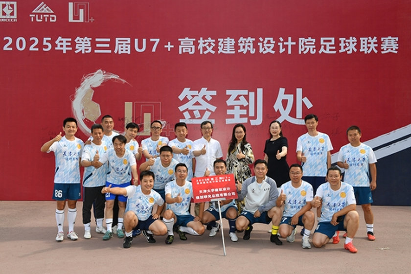 2025 6 18 日至 19 日,第三屆 U7 + 高校建筑設計院足球聯賽在太原點燃戰火。本次賽事由中國勘察設計協會高校分會主辦,太原理工大學建筑設計研究院有限公司承辦,旨在以體育為紐帶,搭建高校設計院交流平臺,推動設計人員在綠茵場上詮釋 拼搏、協作、創新的精神內核。天津大學建筑設計規劃研究總院有限公司黨委、工會與科技信息部聯動籌備,以 專業設計匠心賦能 體育競技熱血,組建 16 人精銳戰隊 —— 由總院院長諶謙掛帥帶隊,副院長賈莉、李星魁任領隊,市場經營部總監張敬擔任教練,竇玉斌出任隊長,攜各設計、職能部門骨干隊員出征賽場。