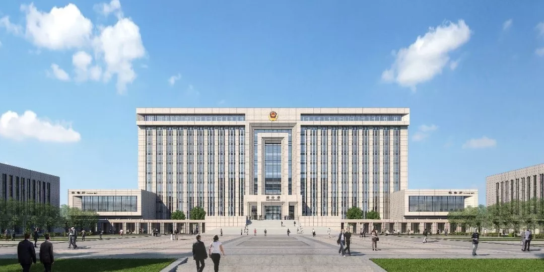 位于主軸線上的綜合樓,不僅體量最大而且在其前部設計大踏步,強化其主體地位。人們通過踏步拾級而上,綜合樓中央位置是一座淺色石材砌筑的通高疊澀大門,莊嚴肅穆,立意“法律之門”。