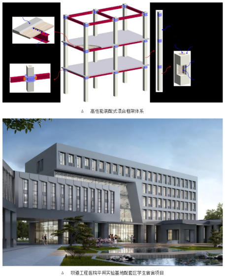 依托天津市科技計劃項目“高性能裝配式框架關鍵技術研究”的支持,天大設計總院開發了一套新型的高性能裝配式混合框架體系。該體系主要由離心預制混凝土管組合柱、鋼梁和樓板等部件組成,綜合了鋼結構和混凝土結構各自優勢,同時結合現有成熟的管樁離心生產工藝,兼顧結構性能、施工效率和經濟性,符合建筑產業化發展要求。現已應用于壩道工程醫院平輿實驗基地配套區學生宿舍項目中。