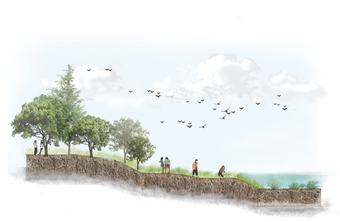天津港原生態濕地剖面示意圖