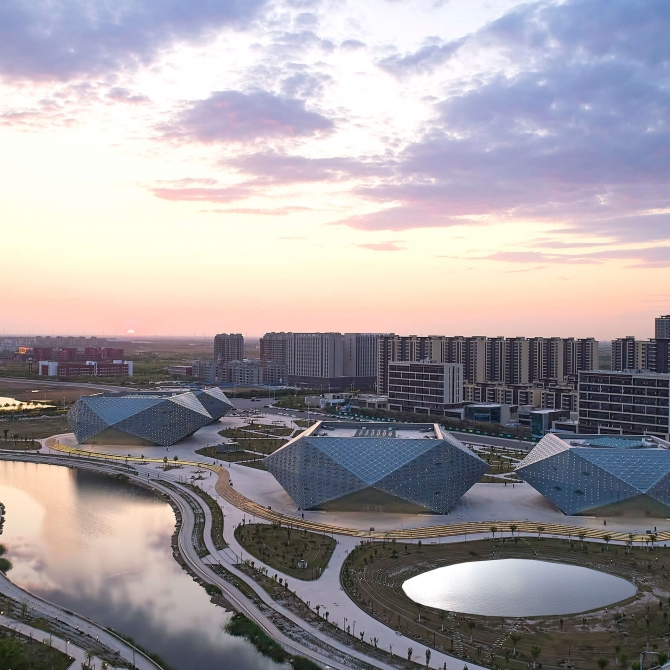黃驊是一座以英雄名字命名的城市。它既有內陸城市的大氣沉穩(wěn),又有濱海城市的浪漫時尚。我們針對黃驊的這一特征,提出“剛柔并舉·英雄港城”的整體設計理念,并將這一理念貫穿于整個規(guī)劃與建筑設計之中。