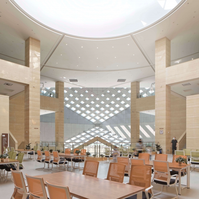 整個規(guī)劃曲中有直,靜中有動,功能布置有分有合,各得其所,為城市提供了一處獨具特色的公共活動空間。 整個規(guī)劃布局力求實現建筑與城市的脈絡相通。