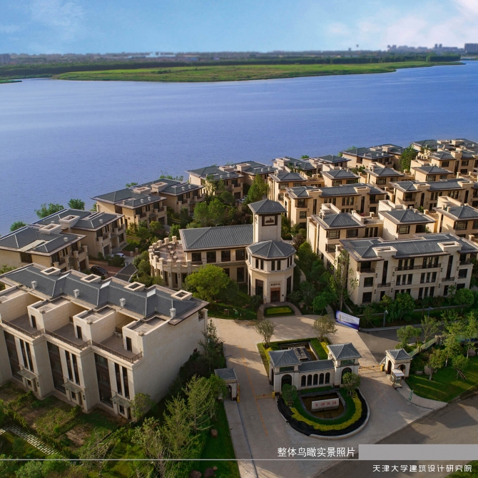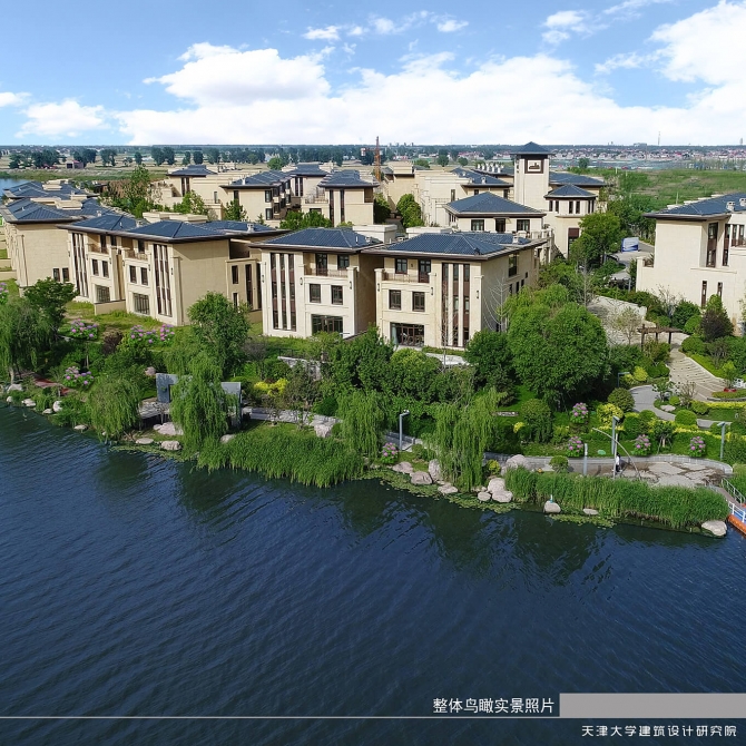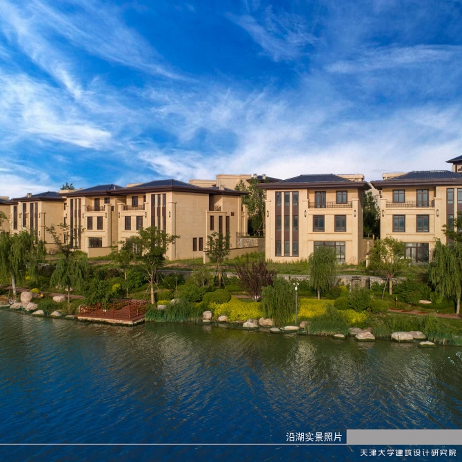 項目用地向湖面伸出,形成三面環水的自然半島,規劃采用袖帶北湖、親水觀景,依水就勢、有機滲透,步移景異、藍綠共享,合院相依、群組共生的理念,營造錯落有致、曲徑通幽的親水居住空間形態。