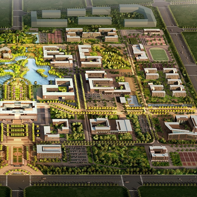綠建星級:校園內建筑百分百達到綠色建筑一星級要求,能環學院設計為三星級綠色建筑。校園的功能布局借助于生態核心的集聚作用,促成以生態節點帶動的功能核心,并以生態框架作為支撐,進行良好的功能布局,進而發揮校園核心區域的影響和帶動作用,形成多樣化的校園功能組團和集約緊湊的功能布局。