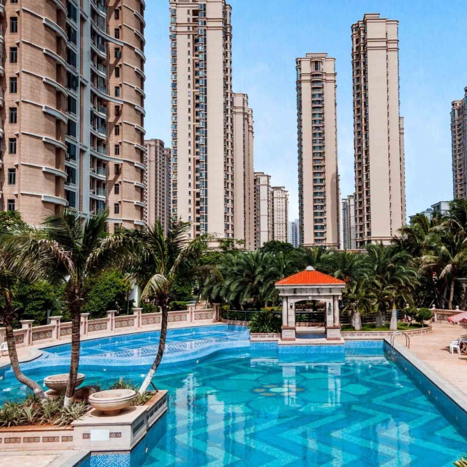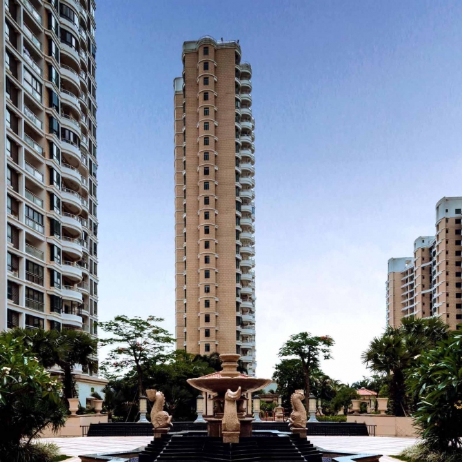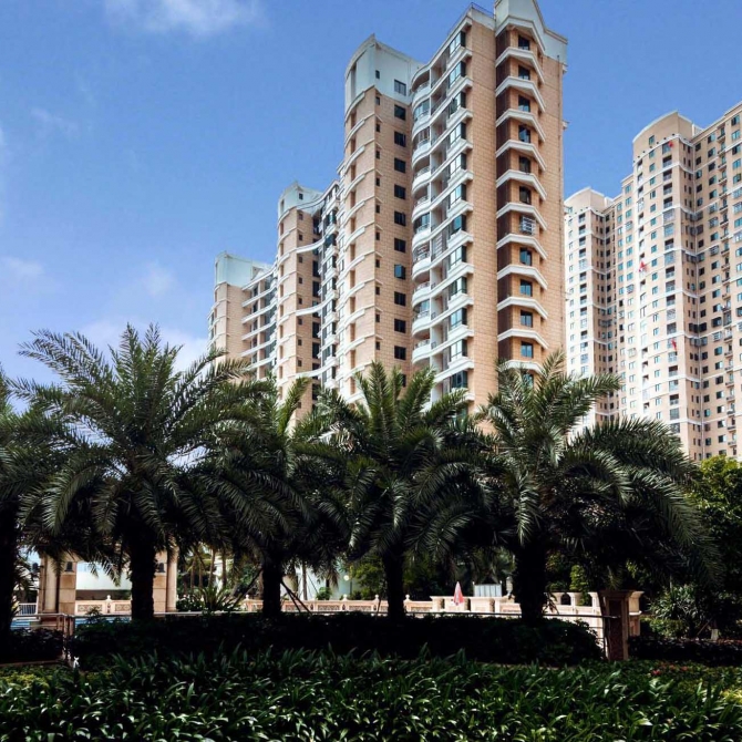 設(shè)計(jì)中居住建筑底層采用挑高架空的模式,使得住區(qū)組團(tuán)內(nèi)部空間圍合而不封閉,建筑與建筑之間各自相對(duì)獨(dú)立,既可以將陽(yáng)光引入開闊的庭園,又可以擁有足夠的陰涼場(chǎng)所供住區(qū)居民休閑和棲息,開敞的空間形成良好的自然通風(fēng),形成舒適的小氣候環(huán)境,彌補(bǔ)炎熱夏季及陰潮冬季不利的氣候影響。庭院內(nèi)大片的綠地、水景和起伏的地勢(shì),與城市空間互動(dòng),構(gòu)成了獨(dú)特的熱帶海島風(fēng)光的生態(tài)大花園。