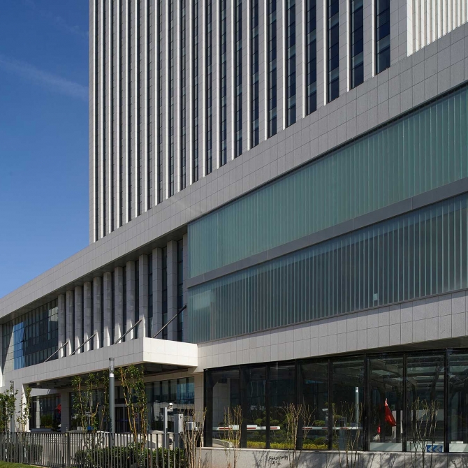 頤航大廈是中交第一航務(wù)工程勘察設(shè)計院有限公司的辦公綜合樓。周圍現(xiàn)有建筑多為辦公建筑,為與周圍建筑協(xié)調(diào)統(tǒng)一,體現(xiàn)出科技辦公建筑的屬性,本建筑采用淺色石材飾面與玻璃幕墻相結(jié)合的外裝飾材料,打造出富有時代感、莊重、大方的現(xiàn)代建筑。