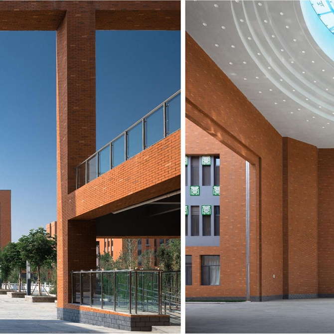 在校園的單體建筑設(shè)計(jì)中,力求打造具有章丘四中文化的現(xiàn)代時(shí)尚的建筑風(fēng)格。校園以紅磚建筑為主要色調(diào),灰白色體塊穿插其中,既體現(xiàn)中國(guó)書(shū)院獨(dú)具魅力的典雅精神,又展現(xiàn)了現(xiàn)代素質(zhì)教育中學(xué)的時(shí)尚風(fēng)采。