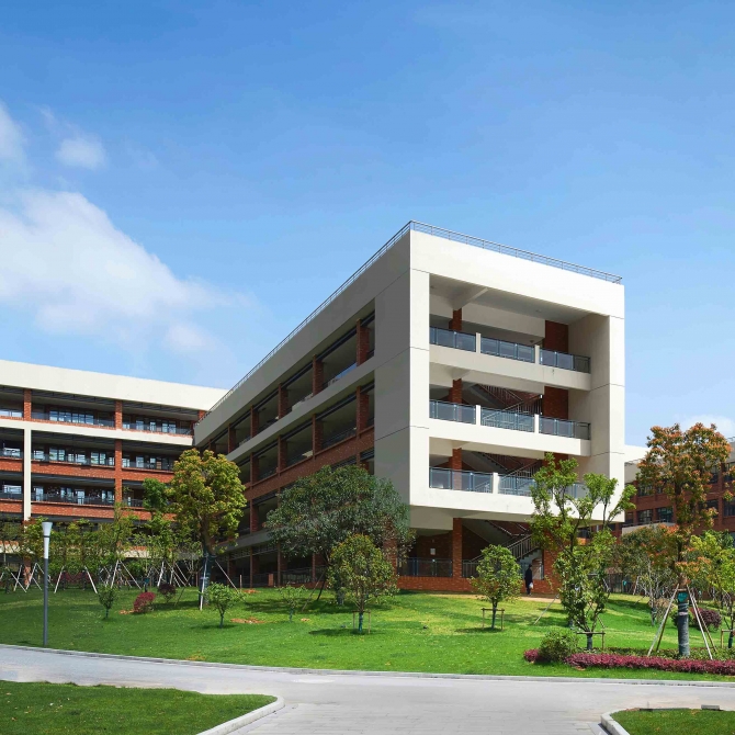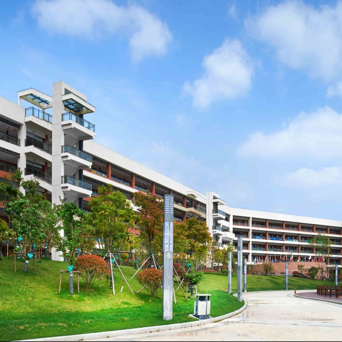 浙江諸暨劍橋國際學校山清水秀環境優美,設計突破了常規的國際學校建筑形象和傳統的山地建筑設計手法,打造出一個通透、樸素的整體建筑空間,好像一片輕盈的羽毛輕輕地落在山水之上,創造出漂浮、輕盈、通透、樸素的國際學校新印象。