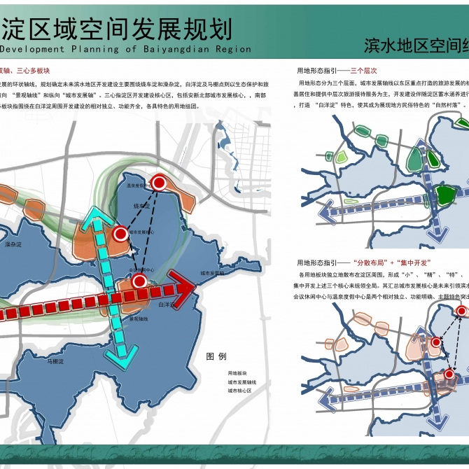 規劃重點研究白洋淀區域城鎮空間組織、產業經濟發展以及生態環境保護三個核心重點問題,為地方政府決策提供智力支持。在快速城鎮化潮流下,本規劃避免盲目擴張用地,嘗試“優質”城鎮化思路,打造一個特色突出的大都市反磁力中心。生態保護方面,引入生態經濟學理論,在發展中恪守生態底線,營造良好人居環境,最大程度發揮白洋淀生態優勢。