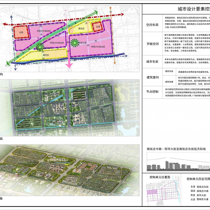 控制性詳細規劃與城市設計從“生態”、“文化”和“成果”三個方面對總體規劃進行了優化、深化和系統化,提出了“區域聯動,精準定位”、“古今聯動,精細設計”、“效益聯動,精確策劃”三個設計理念。