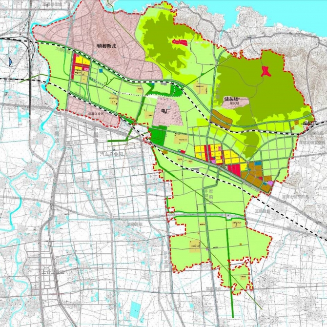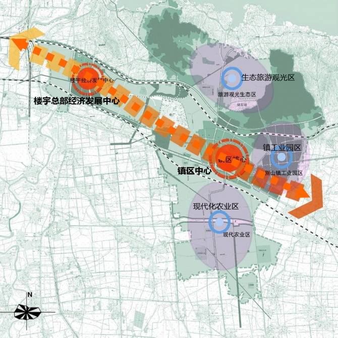 三片區:北部生態旅游觀光區、東部鎮工業園區、南部現代農業區。
