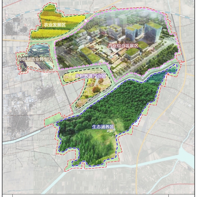 規(guī)劃針對快速城鎮(zhèn)化階段小城鎮(zhèn)發(fā)展典型問題,結合揚芬港鎮(zhèn)資源稟賦特色,強調區(qū)域協(xié)同,從“制造基地”走向“智造中心”,重現(xiàn)津霸雄走廊門戶重鎮(zhèn);強調生態(tài)文明,從“資源經濟”走向“生態(tài)經濟”,重塑平原小城鎮(zhèn)宜居典范;強調以人文本,從“投資環(huán)境”走向“人本環(huán)境”,重構高品質人居支撐系統(tǒng)。