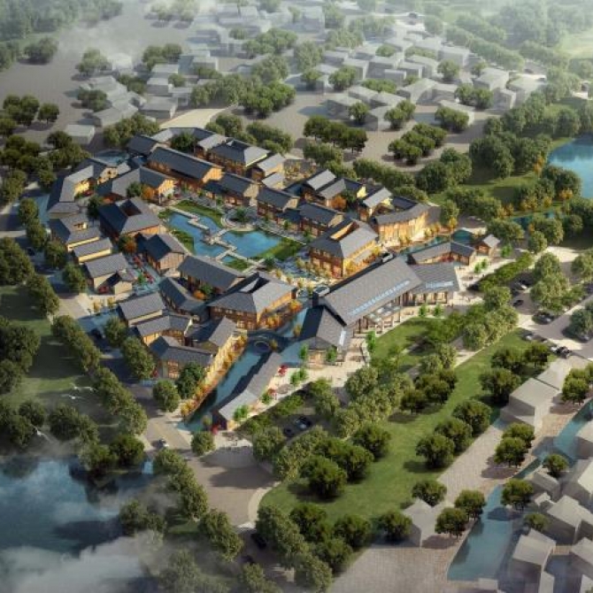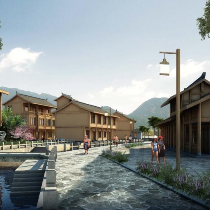 “一軸”為古驛道歷史文化體驗軸,是連接新老古鎮眾多文化旅游景點的步行交通要道,也是形成本項目功能布局的主干,承載了交通、文化體驗、視線引導等多種功能,將本項目各功能分區和景點串聯成一個整體;