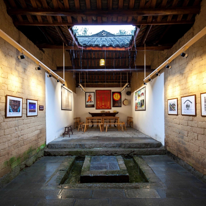 徐家大院是小鎮(zhèn)現(xiàn)存規(guī)模最大、保存相對完整的一組民居,至今已有近130年歷史。設計在尊重建筑基本用途、歷史風貌、人文價值的同時,根據(jù)居民實際狀況,培育老屋新的功能和活力。工程分為保護性修繕和傳承性更新兩部分。前者包括復原大院格局,突出三進堂屋層層遞進的空間特色;當?shù)貍鹘y(tǒng)工匠以原材料、原工藝修繕建筑,重現(xiàn)鄉(xiāng)土特色;加固房屋結(jié)構(gòu),提升抗震性能;設置屋面亮瓦,改善內(nèi)部采光等。后者針對公屋使用率低的現(xiàn)狀,在延續(xù)宗族集會功能的基礎上,植入鄉(xiāng)村博物館等新內(nèi)容,展示小鎮(zhèn)的風土人情與特色產(chǎn)品。
