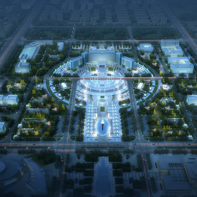 場地內規劃有新建政府辦公樓、商業辦公樓及大型的市民活動廣場,功能定位為新鄉縣新的城市集會、休閑空間。景觀設計堅持綠色生態理念、文化共生理念、城市經驗理念以及互動發展理念。
