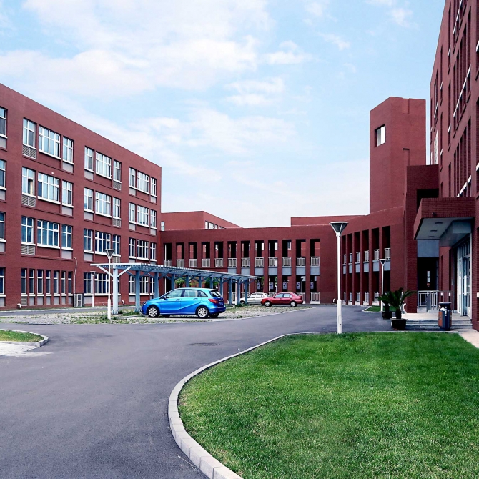 規劃把行政辦公樓布置在校門西側,方便對外聯系;圖書樓與行政辦公樓左右對稱,形成半開放式的入口空間。