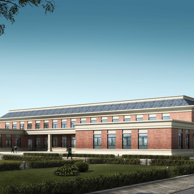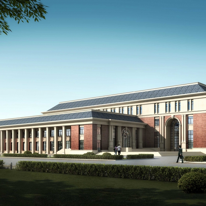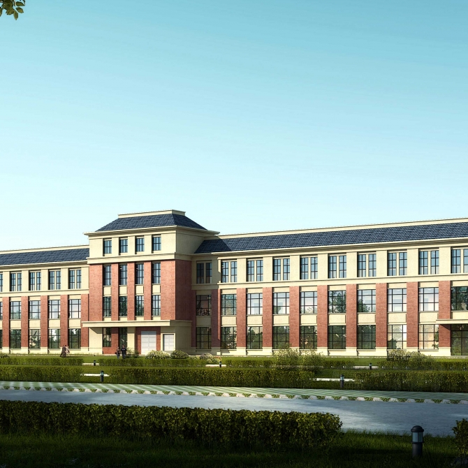 整個集群項目采用折衷主義建筑風格,將歐洲古典主義建筑形式與中國傳統建筑形式相結合,講究比例均衡,注重形式美感,采用三段式的立面構成手法,極富韻律感、秩序感的開窗形式,藍灰色坡屋面,磚紅色墻身與米黃色基座相結合,形成莊重威嚴同時又具有濃郁人文氣息的監獄環境,將監獄文化建設理念和罪犯改造的特殊性融入其中,塑造人與建筑和諧統一的監獄集群。