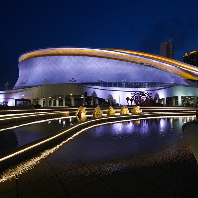外立面造型繼承了“鳳凰羽毛”的設計立意,建筑造型由雙曲的鋁板裝飾幕墻圍護而成;外檐裝修主要采用鋁板裝飾構件幕墻、玻璃幕墻及涂料外保溫墻體。