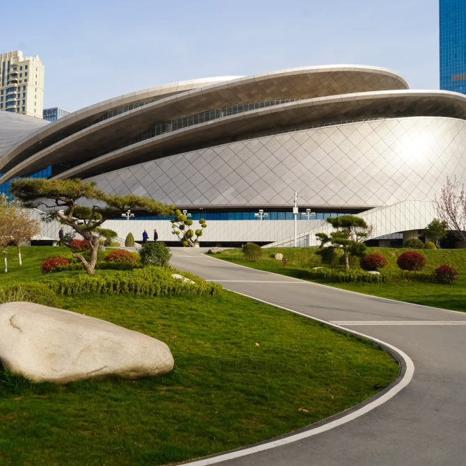 其中,主劇場舞臺面積達到1600平方米,并采用了國際先進的機械設備和燈光設備、階梯式自動升降臺和旋轉舞臺,可滿足各種會議的召開和國內外大型歌舞劇、芭蕾舞劇、大型交響樂、傳統戲劇等不同類型的文藝演出。小劇場為輔助演出空間,可容納516個坐席,采用機械式多功能舞臺,可實現 4~5 種變化形式,座位亦可隨舞臺變化而改變,在同一空間內滿足不同的演出要求。劇院內部還附設前廳、休息廳、后臺服務用房、演員休息區、貴賓室等輔助空間,創造良好的硬件環境以滿足劇院建成后正常經營管理的需要。