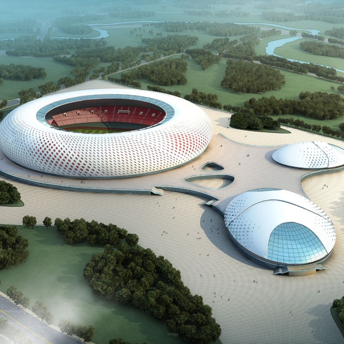 體育場采用框架結構,罩棚采用鋼結構;體育館、游泳館采用框架結構,屋頂采用鋼桁架結構。依據甲方要求,本項目體育場、體育館可承辦地區性和全國單項比賽,定性為乙級體育建筑;游泳館可承辦地方性、群眾性運動會,定性為丙級體育建筑。