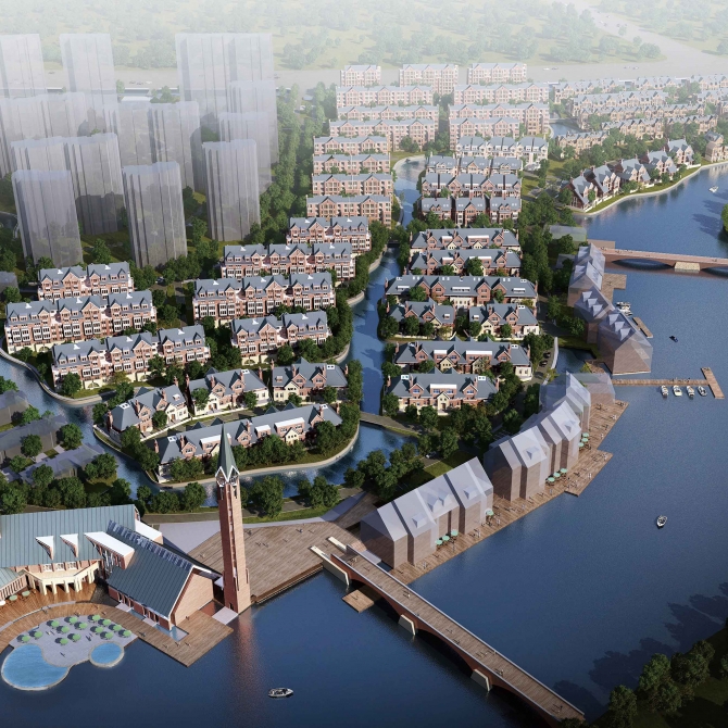 本期為多低層居住圈,空間規劃布局上采用建筑形體高、中、低相結合,并根據地形、地勢組織各功能塊位置,形成沿湖一側低層為主,多層商業穿透,越往內陸建筑越高的空間形式。保證了住宅內部視線距離的最大化和濱水景觀視線的最大化,將純自然生態景觀完全融入了人居生活。