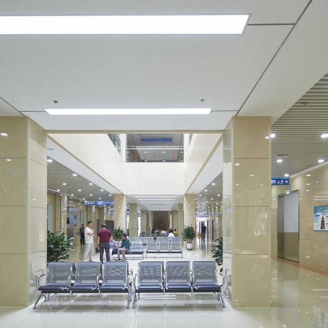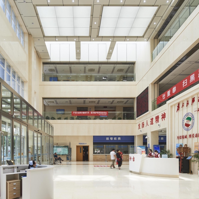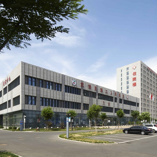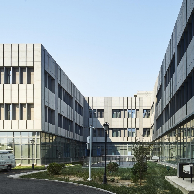 武清第二人民醫(yī)院主要含三層門診醫(yī)技樓、十一層住院樓,及單建的發(fā)熱、感染門診和動(dòng)力中心。門診醫(yī)技樓按診區(qū)展開并圍合成為若干院落空間,達(dá)到良好的通風(fēng)采光效果;住院樓獨(dú)立設(shè)置,與門診樓形成有機(jī)聯(lián)系,并為醫(yī)院留出發(fā)展擴(kuò)建用地。