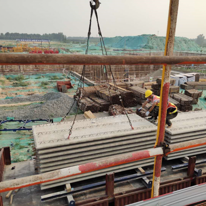 疊合板按照單向受力模型進行設計,最大程度節約了傳統樓板木模的使用,改良了樓板支模的施工工藝,縮短了施工周期,改善了施工環境,提高了施工的質量和精度。