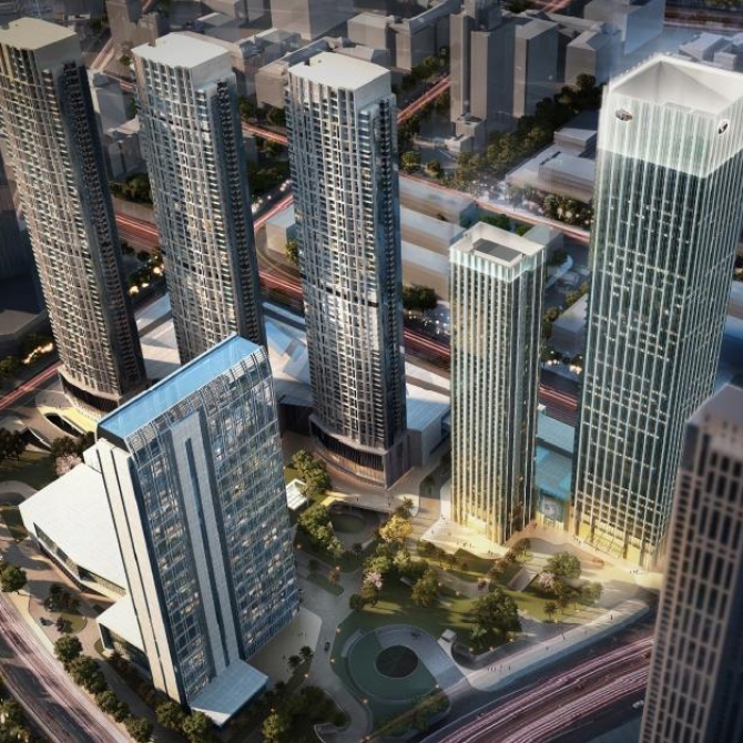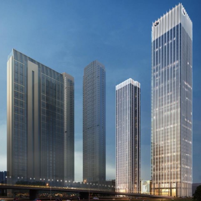 天津嘉里中心二期包括商務辦公樓、居住型公寓及商業裙房。商務辦公樓總建筑高度218.85米,地上44層,地下3層,地上總建筑面積9.3萬平米;居住型公寓總建筑高度146.30米,地上41層,地下3層,地上總建筑面積2.9萬平方米。