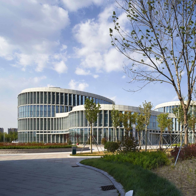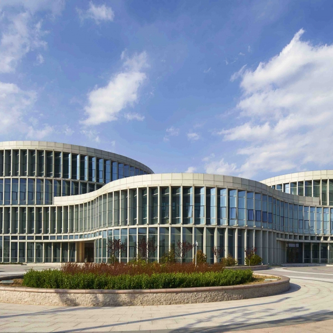 圖書館:共四層,圖書館中間部分為室外中庭,四周布置各類閱覽室與書庫等功能房間,將采光好的房間布置為閱覽室,其余房間布置服務(wù)類用房、辦公室、密集書庫等功能房間。