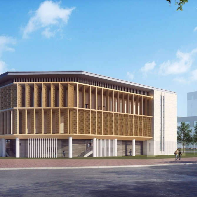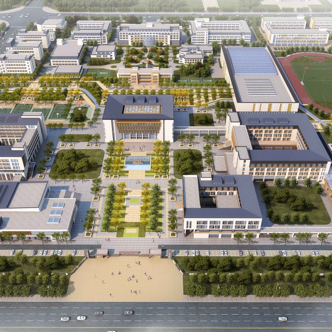 遷安市教育園區的設計主旨是打造有著現代化的設施、現代化的教學方式、現代化的教學空間,同時又具有強烈的書院風骨,人文精神,體現文化傳承的現代書院式園區。園區以綠色、生態、共享為設計原則,各種設施實現園區共享,校市共享。