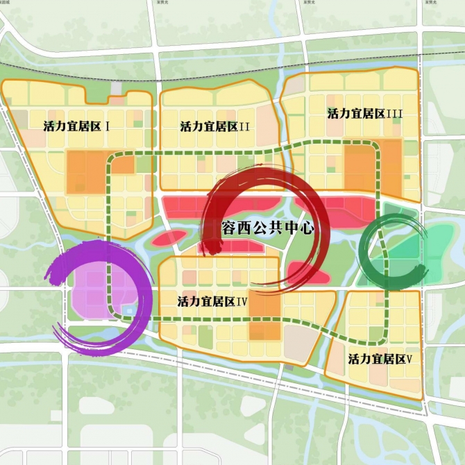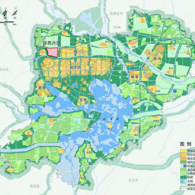 容西片區(qū)緊鄰起步區(qū),與容城縣城、容東片區(qū)、起步區(qū)組團(tuán)協(xié)同發(fā)展,主要城市交通線路、 生態(tài)廊道互聯(lián)互通,服務(wù)搬遷安居,具有保障起步區(qū)及周邊地區(qū)建設(shè)的重要功能。