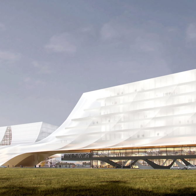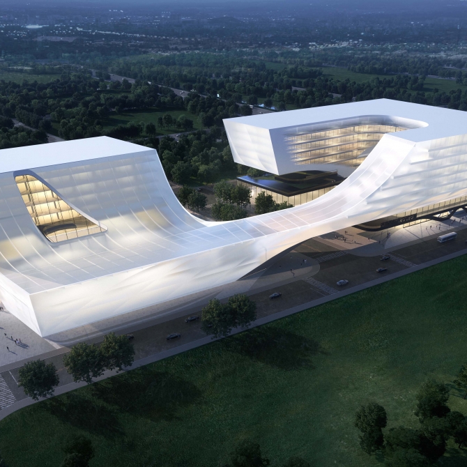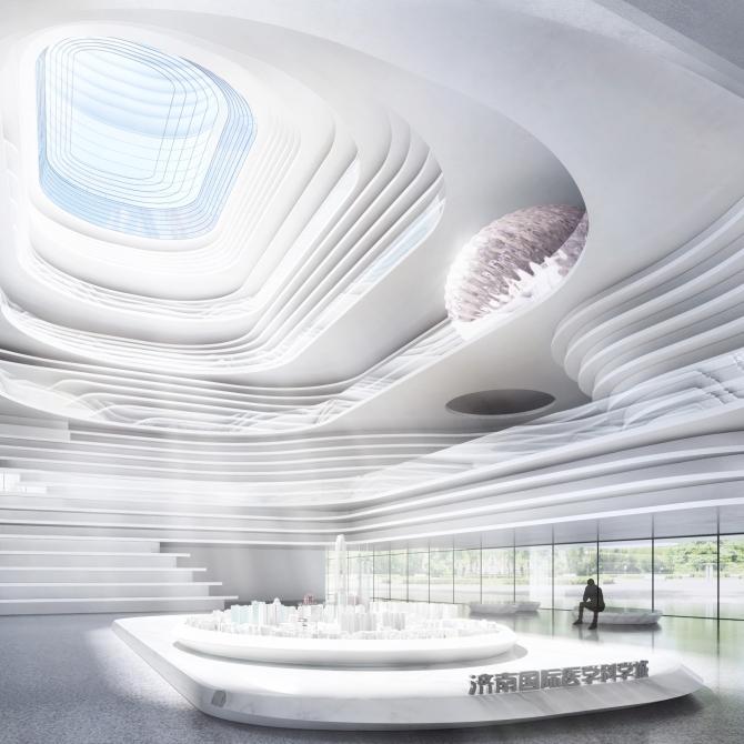 濟南國際醫學科學城體驗展示中心為展示濟南國際醫學科學城建筑形象與區域核心價值,展示前沿醫學科技,邀請高端科研人才交流學習,促進醫學科學發展的重要文化標志性建筑。在本項目國際方案征集中,設計創新院 顧志宏工作室的“智慧云谷 生命方舟”設計方案得到專家評委的一致認可,一舉中標。