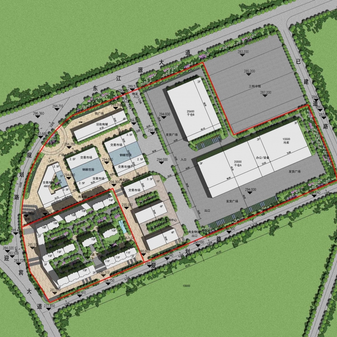 本項目總用地面積約133333㎡,約為200畝,其中商業用地面積約106666㎡,約為160畝,住宅用地面積約26667㎡,約為40畝,場地東西長約556m(最長處),南北寬約289m(最寬處)。