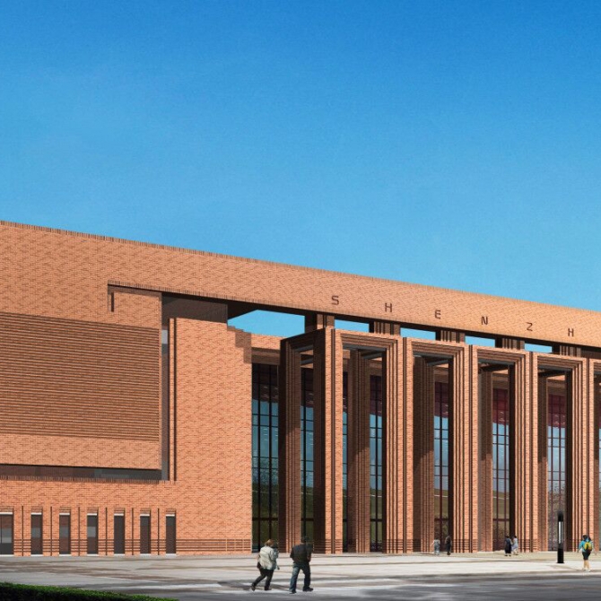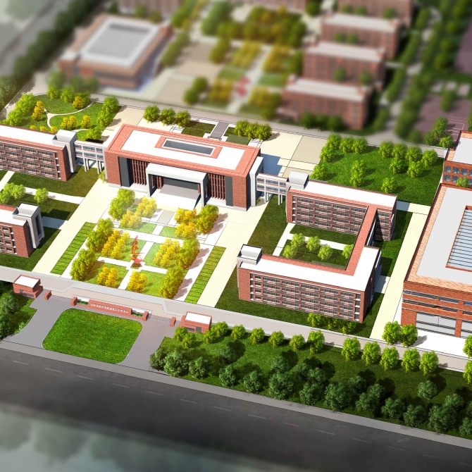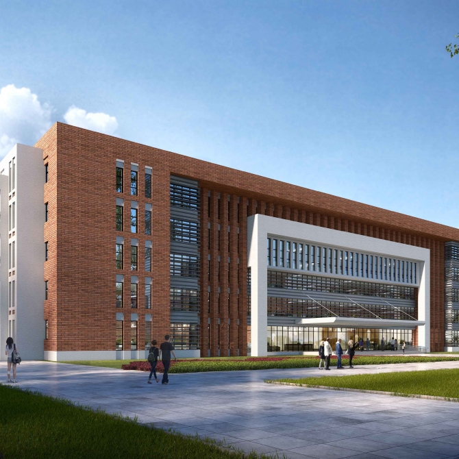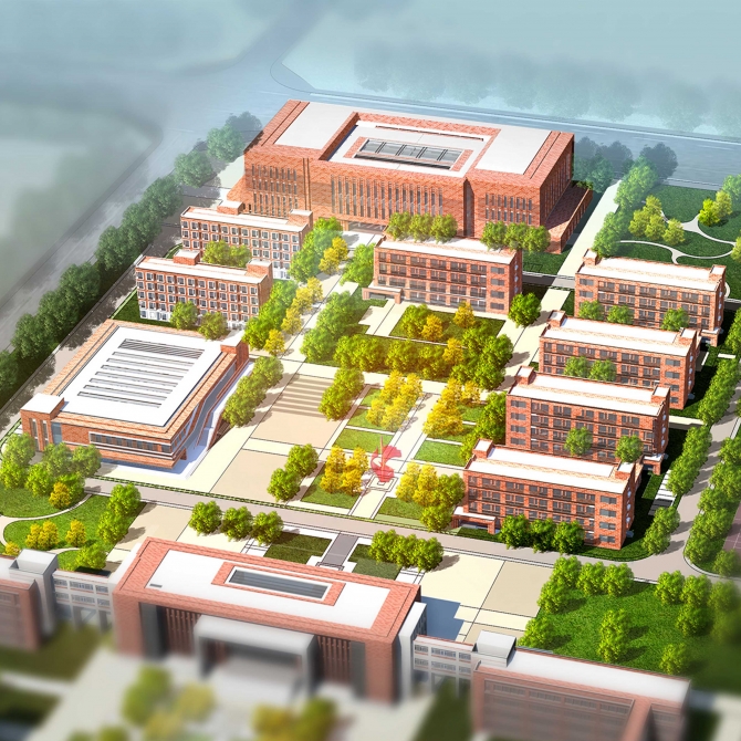 圖書館:位于校園的最北側,緊鄰恒祥路,圖書館中設計有1100人的大報告廳;圖書館和大報告廳均考慮對外開放,能同時為市民和學生服務。