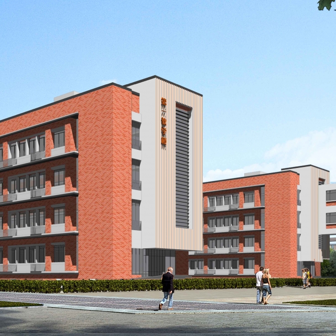 生活區(qū):布置在校園的北側,包括一棟食堂,五棟學生宿舍和兩棟教師公寓,生活區(qū)與教學區(qū)通過綠化進行分隔,避免相互之間的干擾,保證各自的獨立性。